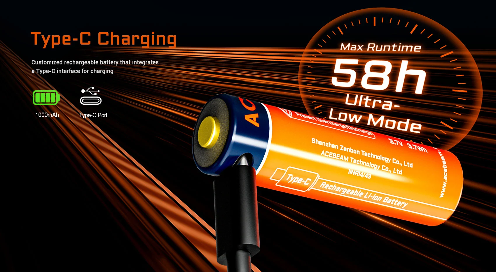 ✅1 x Acebeam 14500 1000mAh USB-C Rechargeable Li-ion Battery (AB14CP10)