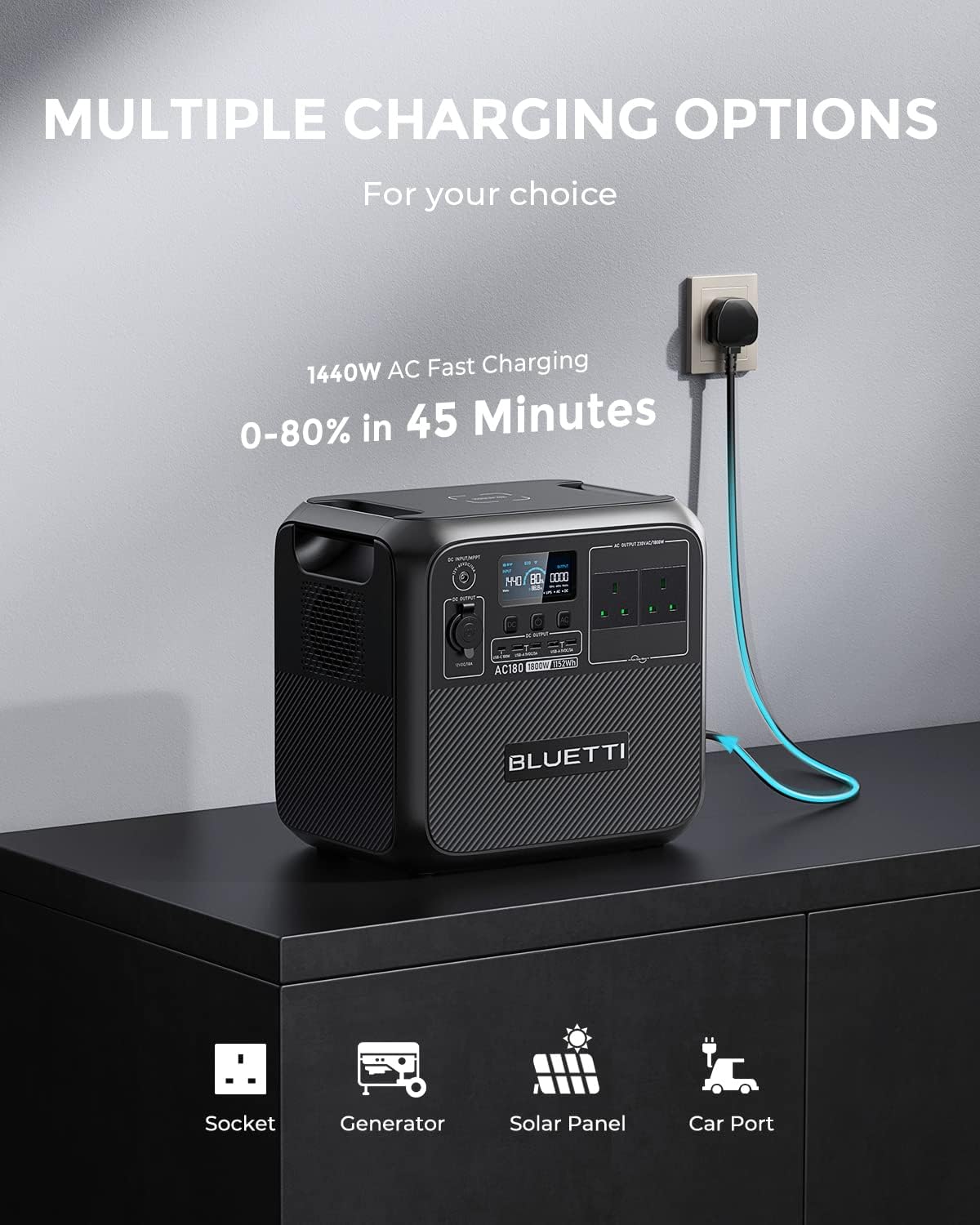 [Charged in 1 Hour] - The AC180P packs a 1152Wh LiFePO4 battery, which can be fully charged in just 1 hour at 1440W AC input - always ready to go when you need it.