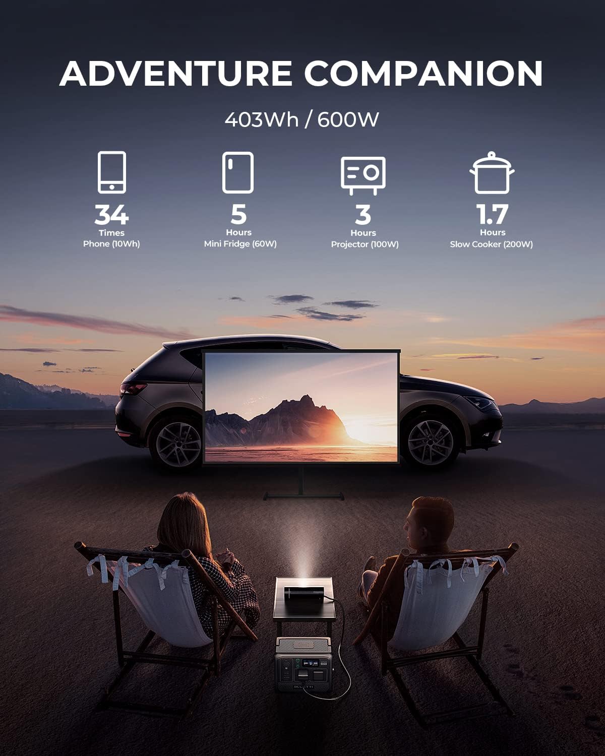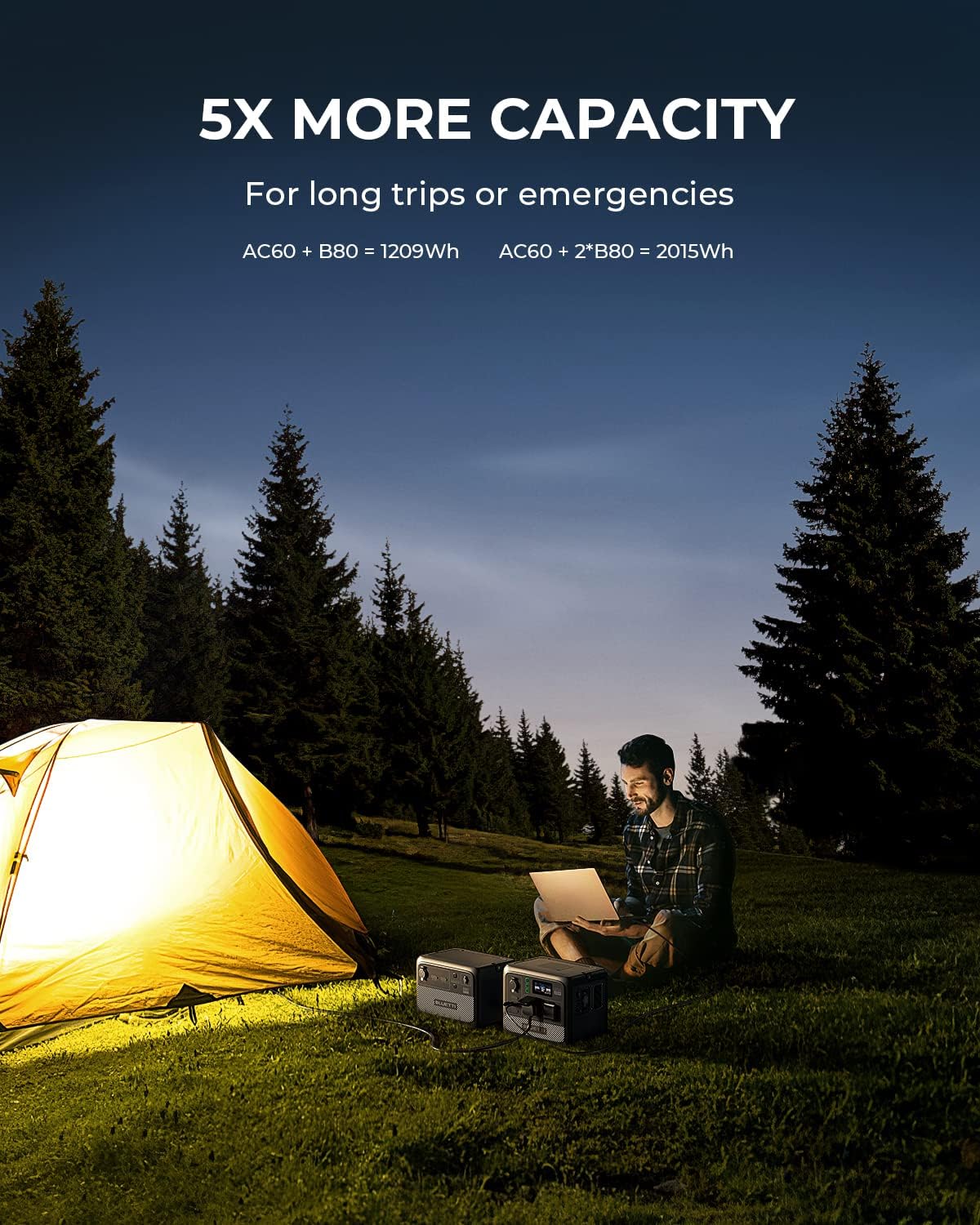 [5X More Capacity] - The BLUETTI AC60 has a capacity of 403Wh, which can be expanded to 2015Wh with 2 B80 batteries, enough for your long trips or extended emergencies.
