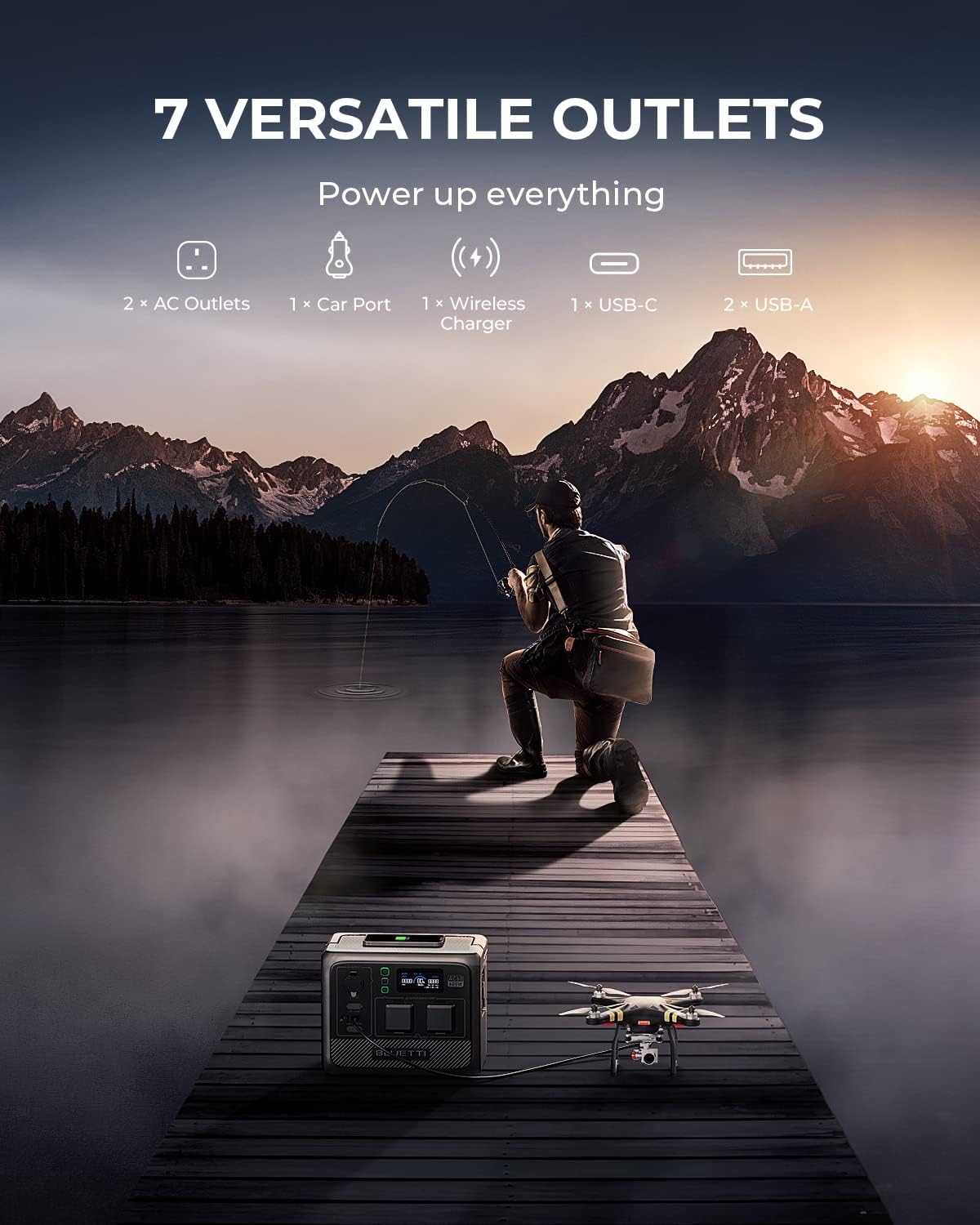 [Superb Performance] - With a 600W inverter and 7 outlets, you can charge multiple devices at once. While the 1200W Power Lifting mode allows you to run high-wattage heaters, kettles, and more.