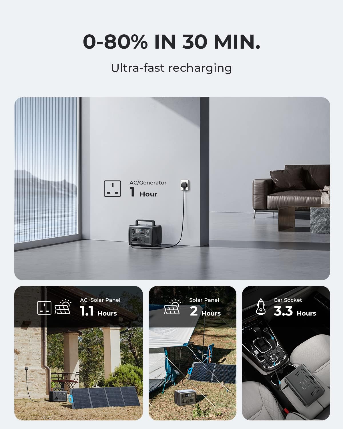 [Ultra-fast Charging] - No bulky power brick, a single cable is good to charge EB3A at most 350W; you also can use the PV+AC together for 80% SOC in just 30min. (Solar charging cable not included.)