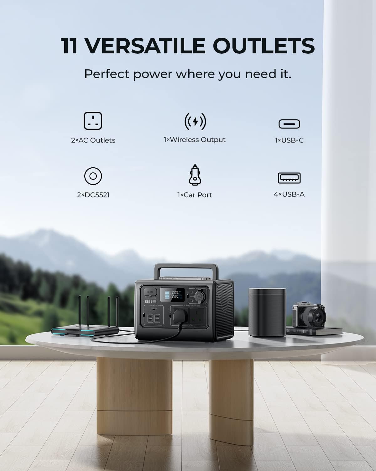 [Camping Game Changer] - With 537Wh LFP cells and a 700W inverter, the EB55 power station can run most of your outdoor essentials and home electronics such as phones, projectors, mini freezers, etc.
