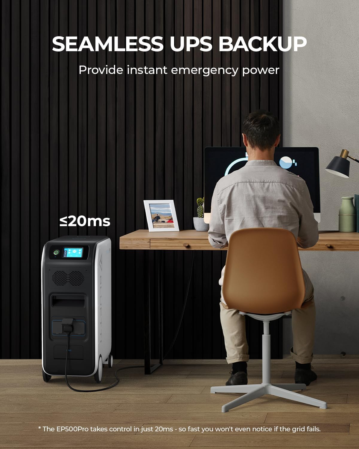[Outlast A Blackout] - EP500Pro features amazing 5100Wh LFP cells and a 3000W inverter, strong enough to power an entire party, workshop, or even your whole house for a day or two during an outage.
