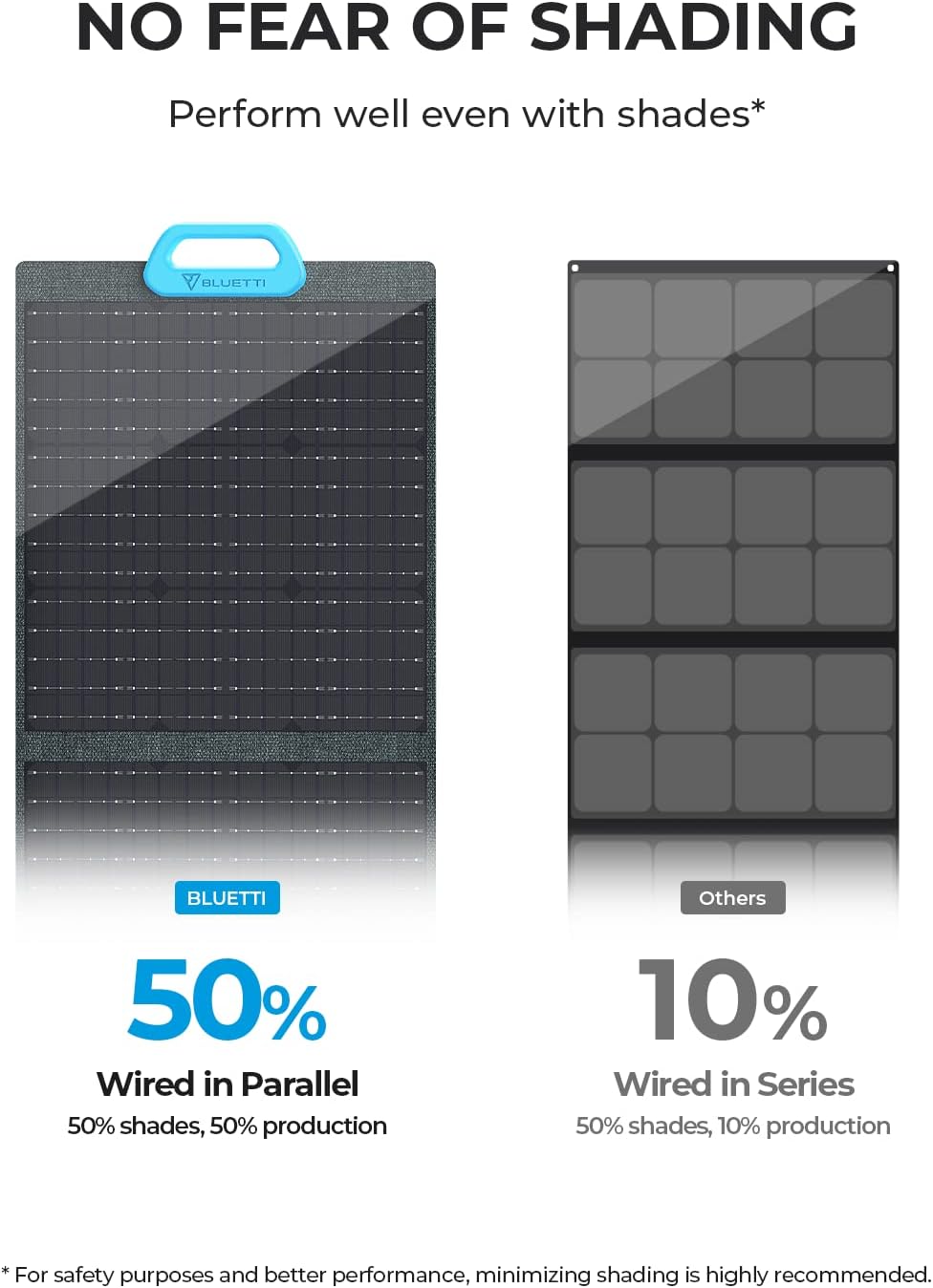 [200W Solar Panel] - PV200 w/ Solar connectors can offer 200W solar power for your solar generators like BLUETTI EB3A/EB55/EB70/AC200P/AC200MAX/AC300/EP500/EP500Pro and other generators on the market.
