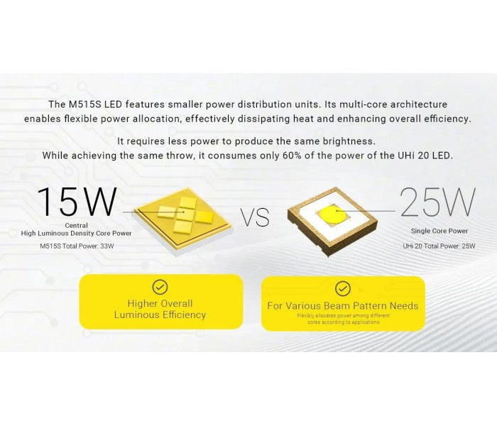 - Utilizes 4 x 5-core M515S LEDs, providing a max output of 6,000 lumens