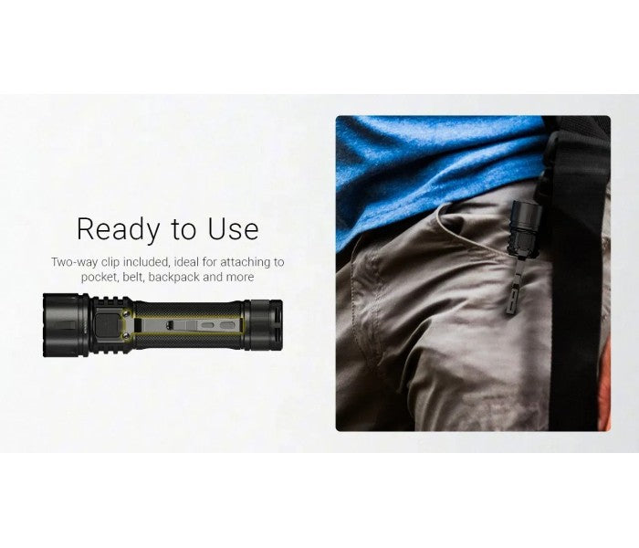 The EX7 is compatible with a 21700 high performance rechargeable Li-ion battery, which is easy to install and remove. It is USB-C rechargeable, and its universal interface fits most common charging cables. The magnetic tail allows secure attachment to metal surfaces, enabling flexible placement and movement without interrupting your work. The included two-way clip is designed for attachment to pockets, belts, and backpacks. With an IP68 rating and 2m impact resistance, the EX7 is suitable for all-weather use.