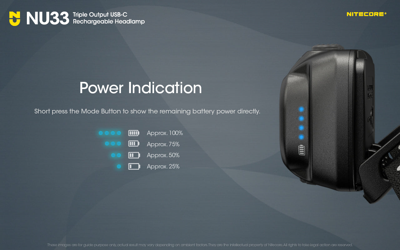 The lockout mode is specially designed for avoiding accidental activation, ideal for storing the NU33 in a backpack or pocket. What's more, the skin-friendly headband included with reflective strips can guarantee all-round protection and safety at night. It is all weather applicable as IP66 rated and 1m impact resistant.