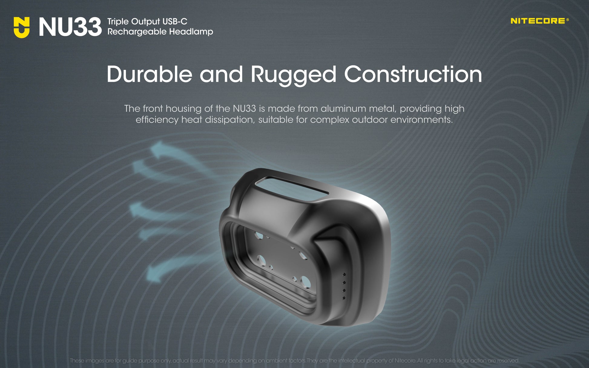 The NITECORE NU33 is our new member of the NU Series — Triple Output USB-C Rechargeable Headlamp. Utilizing a primary white LED, it has a max output of 700 lumens ideal for night running, outdoor adventures, camping and more. With 6 lumens output, the high CRI auxiliary white light (CRI≥90) is ideal for temporary lighting at night. Moreover, CONSTANT-ON and SLOW FLASHING of the auxiliary red light can effectively protect the night vision, applicable to wildlife observation, stargazing, emergency response and night photography.