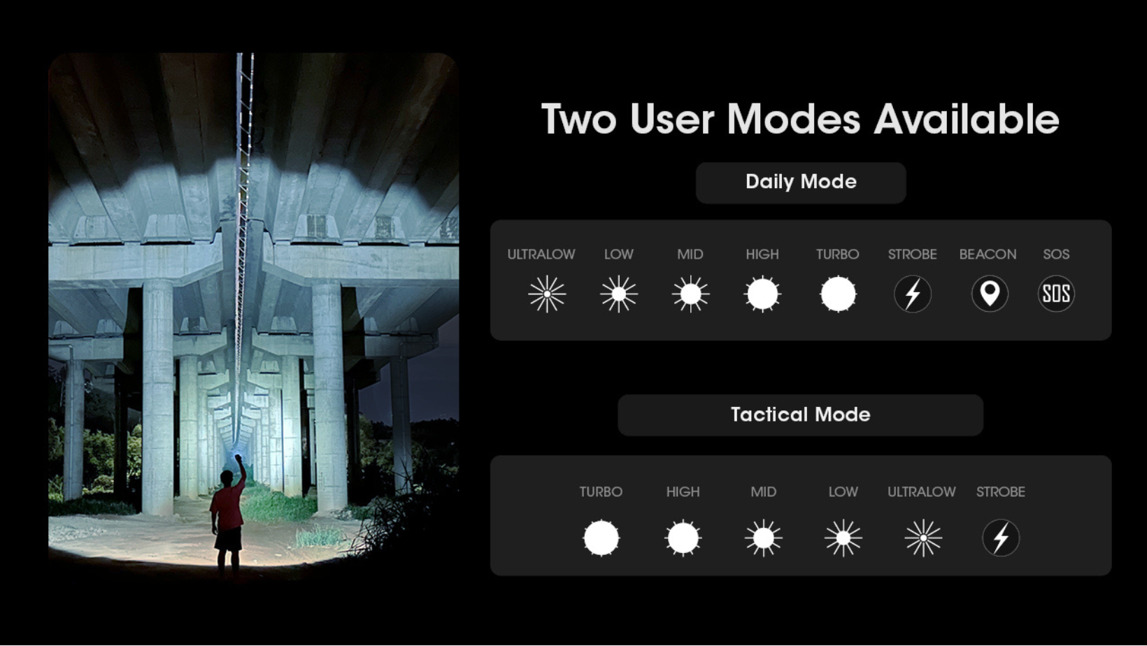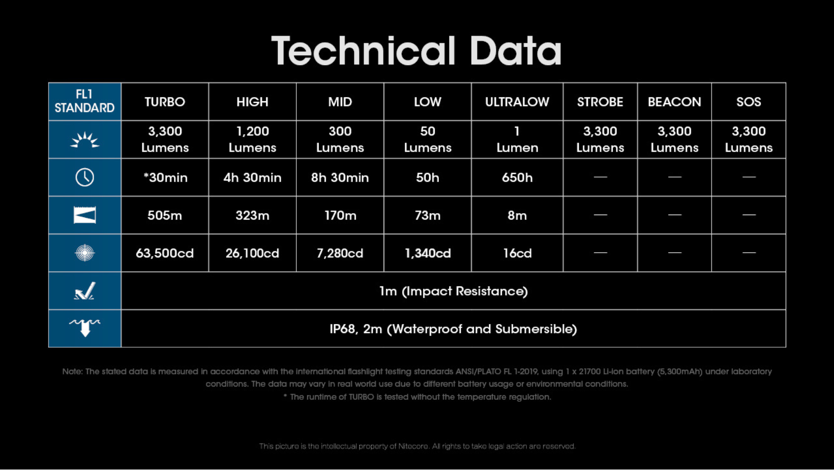 - Turbo 3300 Lumens - *30 Minutes