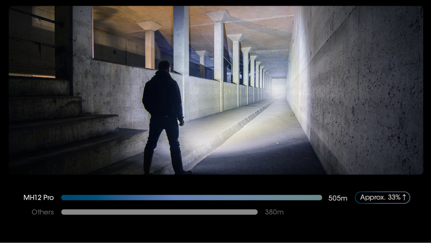 The MH12 Pro comes with a high-capacity 5300mAh battery and can be rapidly charged through its built-in USB-C port. Power indicators next to the mode button display the remaining battery level. Once fully charged, the MH12 Pro can achieve a maximum runtime of over 650 hours on its lowest mode.