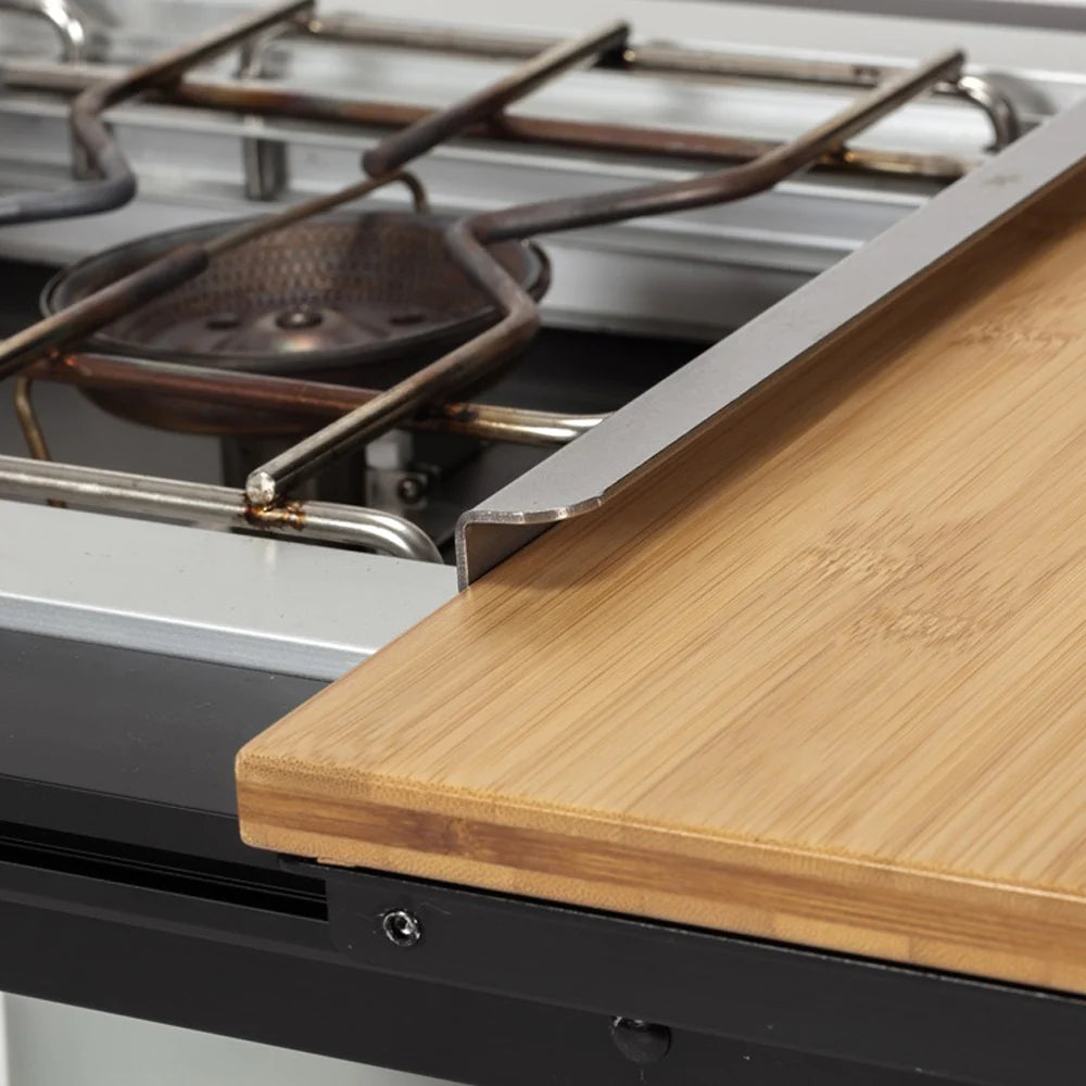The Extension IGT is a two-unit expandable Iron Grill Table. The table has a minimalistic design that does not require any connection tools or extension pieces. The Extension IGT features two laminated bamboo tabletops and an aluminum alloy stand. To use, slide each side of the bamboo to their respective opposite sides and insert a stove in the middle. Pair the Extension IGT with the Double Burner Stove GS-230 for a complete cooking set-up.